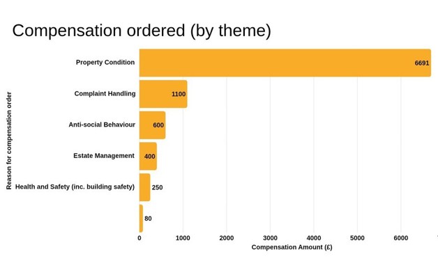 Compensation orders were made, totalling £9,121, a breakdown of this is shown in the graph above.